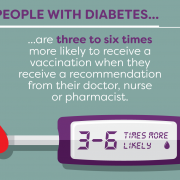 Influenza is a highly contagious respiratory illness. Anyone can get influenza, but some people have a much higher risk of getting very ill from the infection. People with diabetes are 3-6 times more likely to be hospitalized during influenza epidemics[1]. They also have a much higher rate of death associated with an influenza infection[2]. Moreover, studies have shown that influenza can make diabetes difficult to manage. This is why yearly influenza vaccination is recommended by the World Health Organization for high risk patients, including those with diabetes.