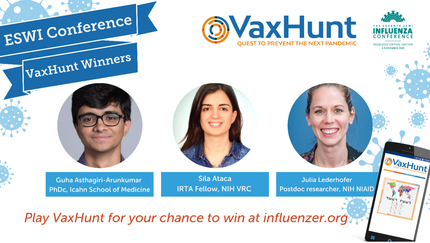 Congratulations to Guha, Sila, and Julia, winners of VaxHunt: The Quest to Prevent the Next Pandemic, an online game launched by the Influenzer Initiative at #ESWI2020.